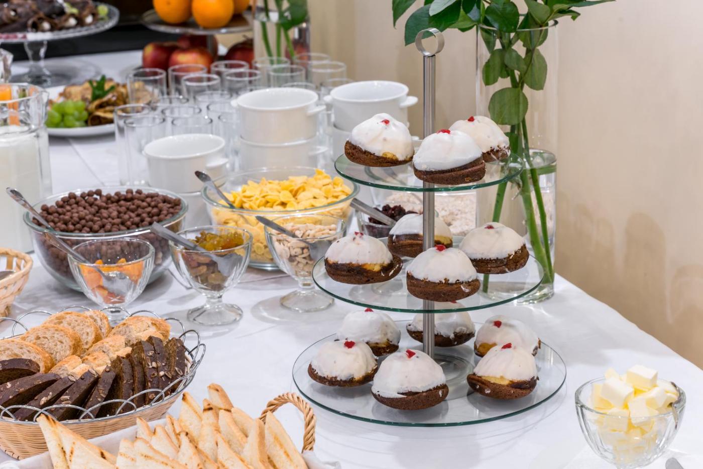 At the Stanislaviv Hotel’s restaurant guests can enjoy Ukrainian cuisine. Breakfast is served each morning. The hotel also offers conference halls and a banqueting hall.
