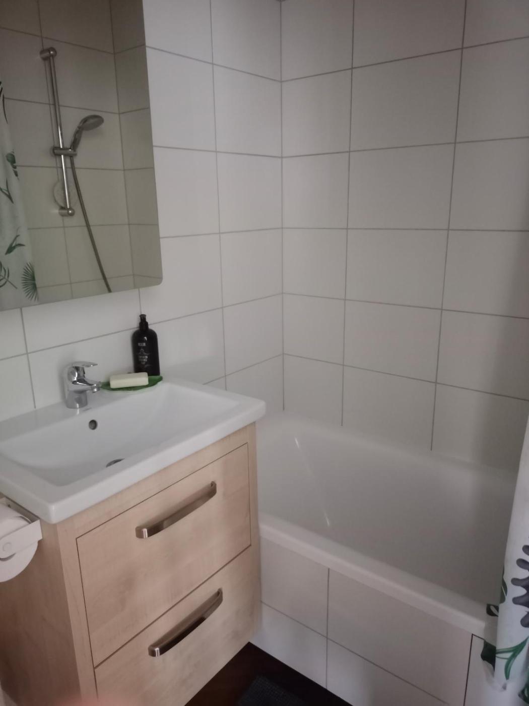 One-Bedroom Apartment. The air-conditioned apartment has 1 bedroom, 1 bathroom with a bath and a kitchen. The apartments kitchen is available for cooking and storing food. The apartment offers a washing machine, soundproof walls and heating. The unit has 1 bed.