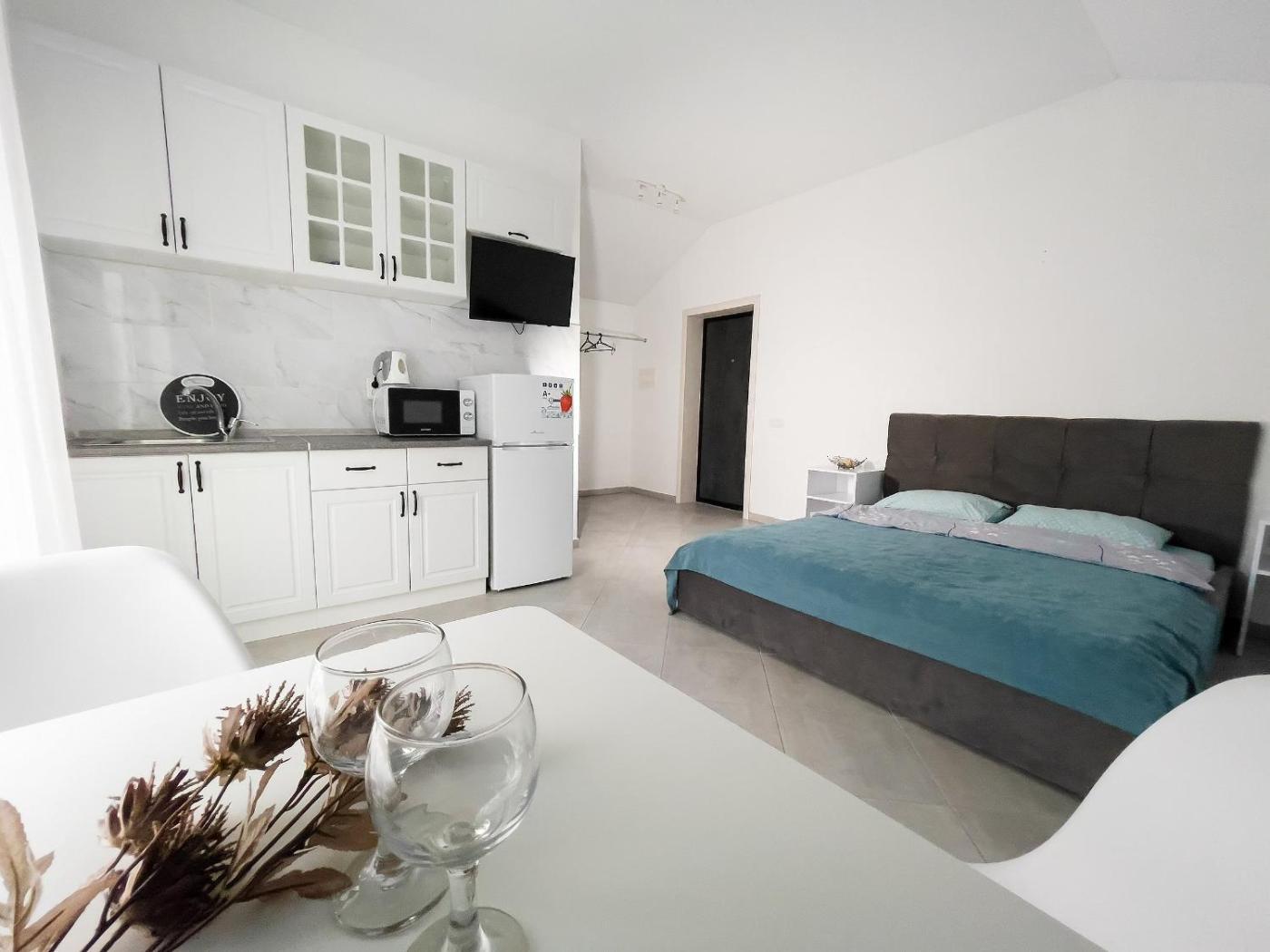 Deluxe Studio. The air-conditioned suite has 1 bedroom and 1 bathroom with a shower and a hairdryer. The suites kitchen, which features a refrigerator and a microwave, is available for cooking and storing food. The suite features a dining area, a wardrobe, an electric kettle, a tiled floor and a flat-screen TV. The unit has 1 bed.
