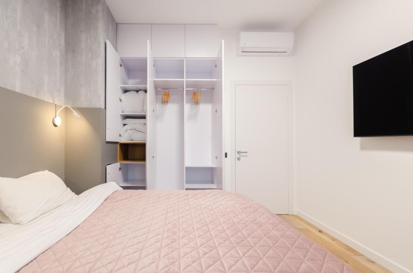 One-Bedroom Apartment. The air-conditioned apartment has 1 bedroom, 1 bathroom and a kitchen. The apartments kitchen is available for cooking and storing food. This apartment features a washing machine and a flat-screen TV. The unit has 2 beds. ;