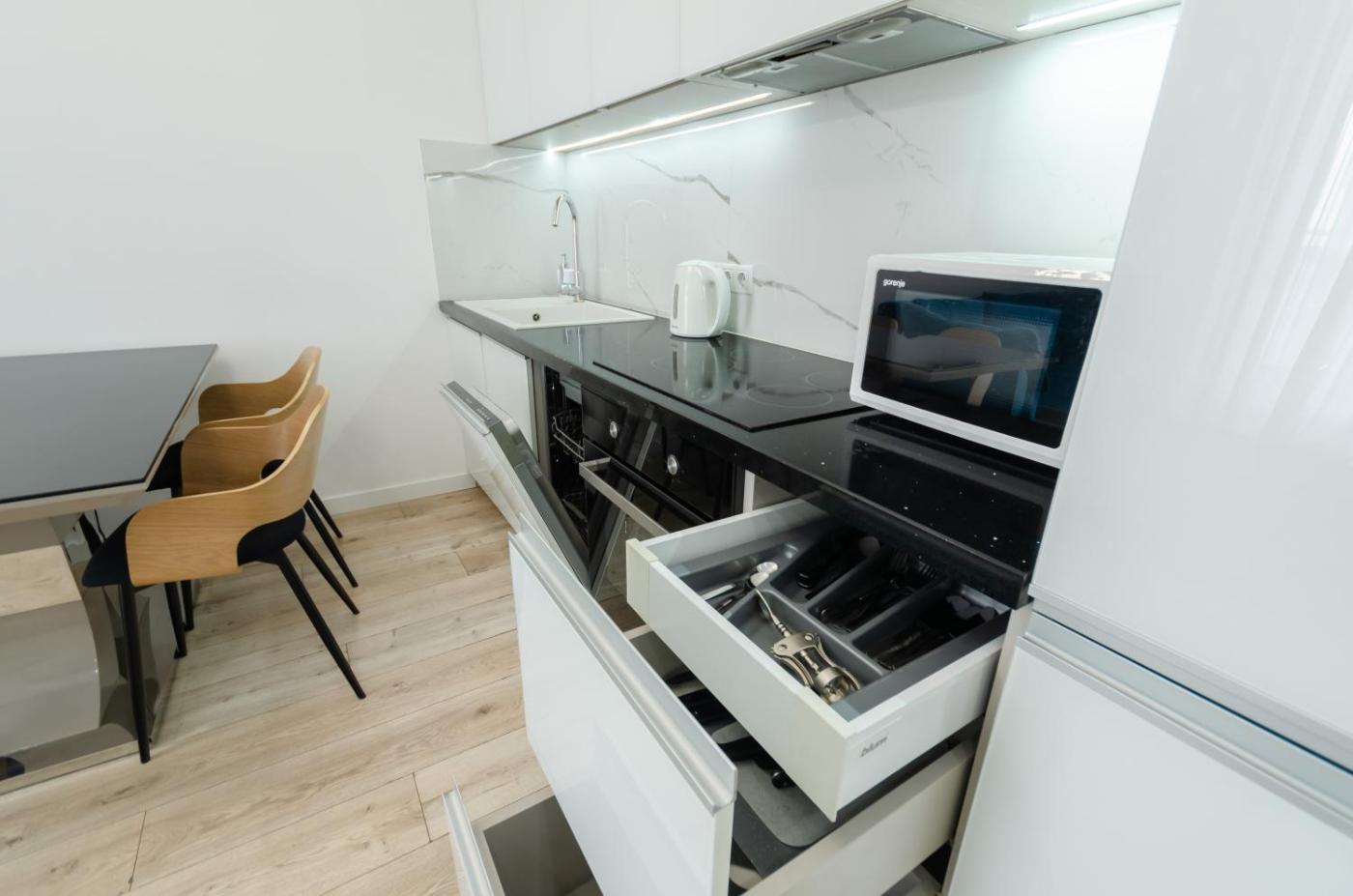 One-Bedroom Apartment. This apartment comprises 1 living room, 1 separate bedroom and 1 bathroom with a bath and free toiletries. In the kitchen, guests will find a stovetop, a refrigerator, a dishwasher and kitchenware. The air-conditioned apartment provides a flat-screen TV, a washing machine, a seating area, a dining area as well as city views. The unit offers 2 beds. ;