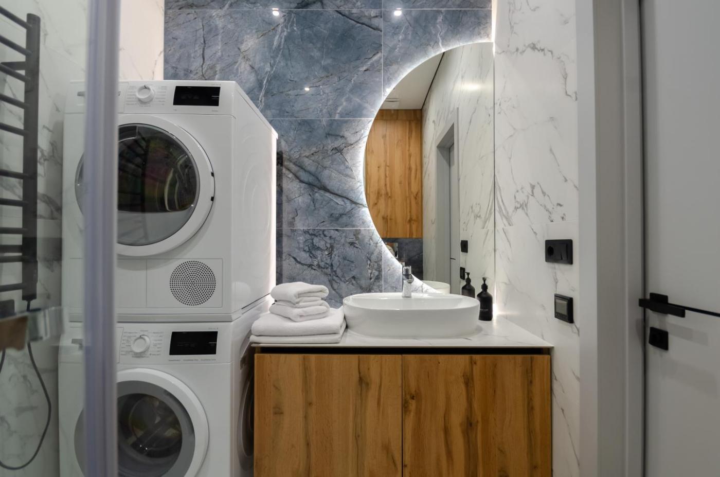Apartment. The air-conditioned apartment features 1 bedroom and 1 bathroom with a shower and a hairdryer. Guests can make meals in the kitchenette that is equipped with a stovetop, a refrigerator, kitchenware and an oven. The apartment provides a washing machine, soundproof walls, a dining area, a flat-screen TV, as well as city views. The unit offers 2 beds. ;