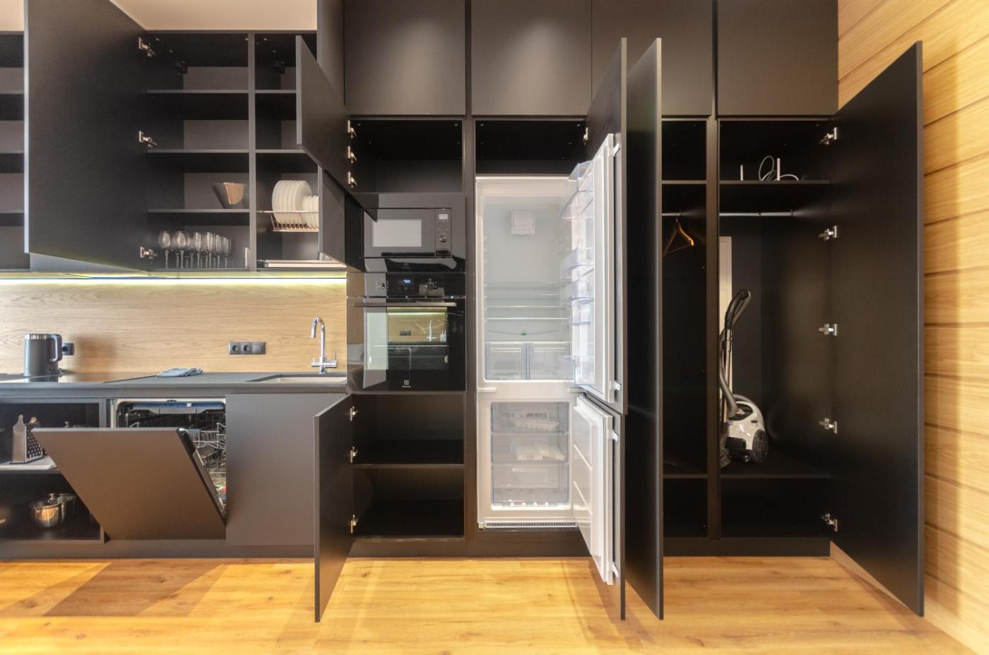 One-Bedroom Apartment. This apartment comprises 1 living room, 1 separate bedroom and 1 bathroom with a bath and free toiletries. Guests can make meals in the kitchen that is equipped with a stovetop, a refrigerator, a dishwasher and kitchenware. The air-conditioned apartment provides a flat-screen TV, a washing machine, soundproof walls, a seating area as well as city views. The unit offers 2 beds. ;