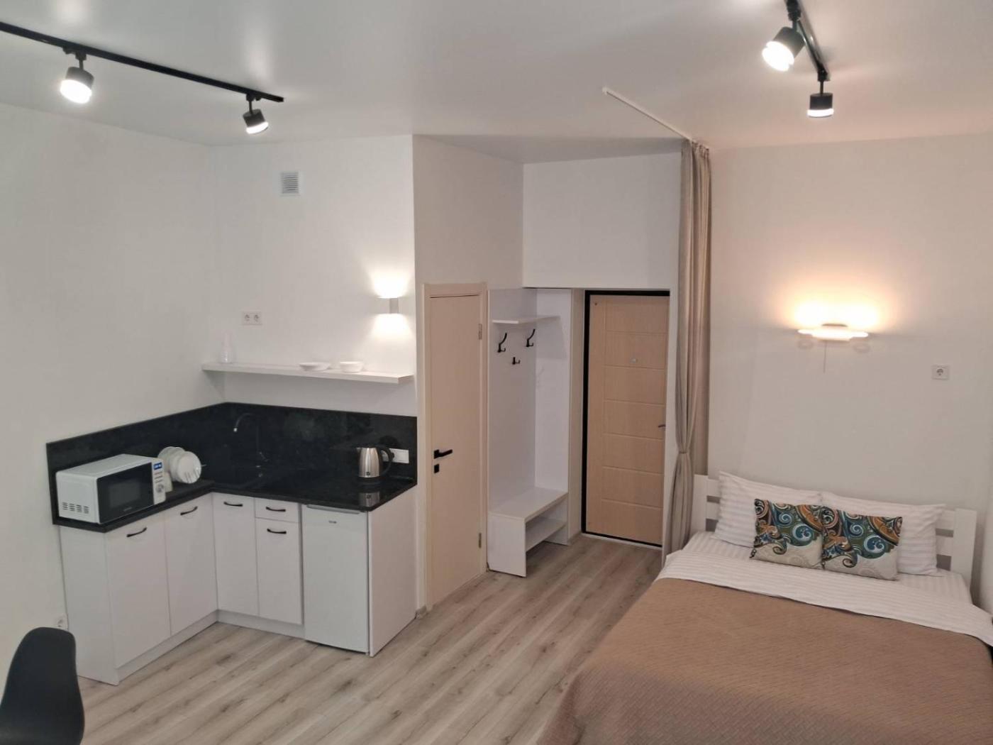 Studio Apartment. Boasting a private entrance, this air-conditioned apartment comes with 1 living room, 1 separate bedroom and 1 bathroom with a shower and a hairdryer. In the well-equipped kitchen, guests will find a stovetop, a refrigerator, kitchenware and a microwave. The apartment features a washing machine, soundproof walls, a tea and coffee maker, a flat-screen TV with satellite channels, as well as city views. The unit has 1 bed. ;