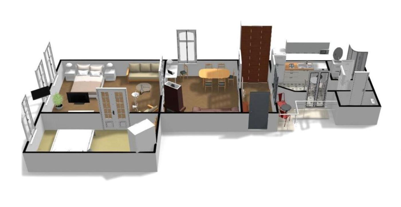 Two-Bedroom Apartment. This spacious apartment is comprised of 1 living room, 2 separate bedrooms and 1 bathroom with a shower and free toiletries. The well-fitted kitchen features a stovetop, a refrigerator, kitchenware and a microwave. Featuring a balcony with ancourtyard view, this apartment also offers a washing machine and a flat-screen TV with cable channels. The unit offers 3 beds.