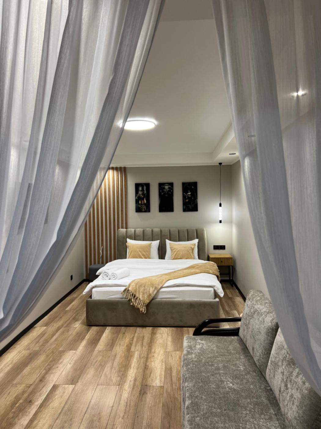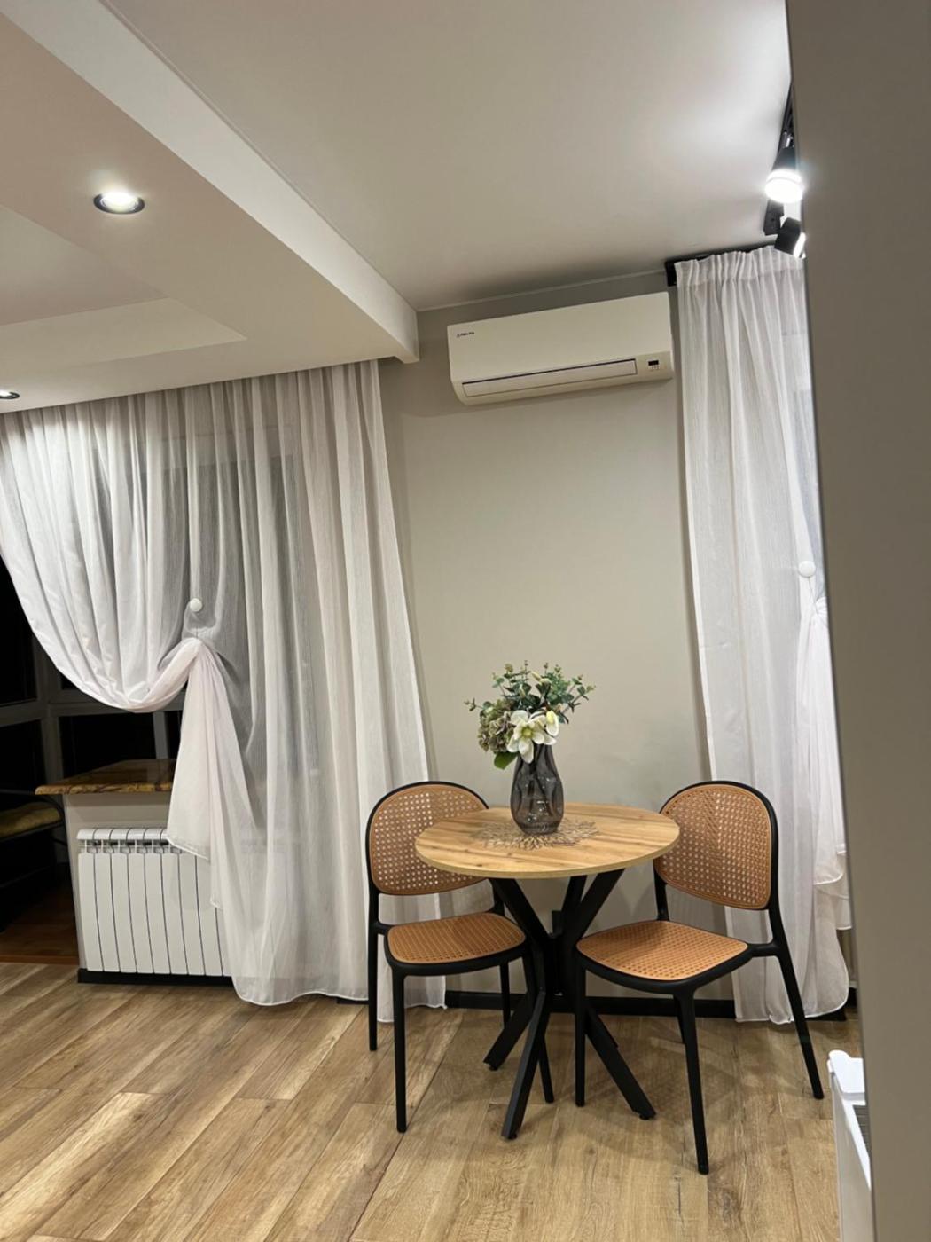 One-Bedroom Apartment. This apartment consists of 1 living room, 1 separate bedroom and 1 bathroom with a bath and free toiletries. Guests can make meals in the kitchen that is equipped with a stovetop, a refrigerator, kitchenware and a microwave. The air-conditioned apartment provides a flat-screen TV with cable channels, a washing machine, a tea and coffee maker, a wardrobe as well as city views. The unit offers 2 beds.