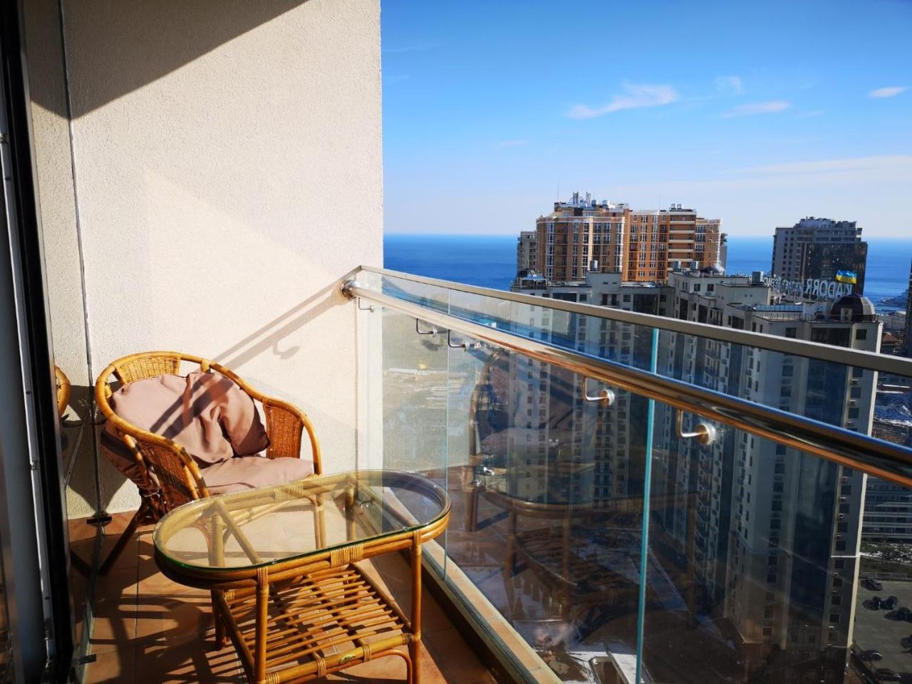 Located within the Primorsky district in Odesa, Элитная квартира в Аркадии с видом на море 26 Жемчужина has air conditioning, a patio, and city views. This beachfront property offers access to a balcony and free WiFi. The accommodation provides a lift, full-day security and currency exchange for guests.