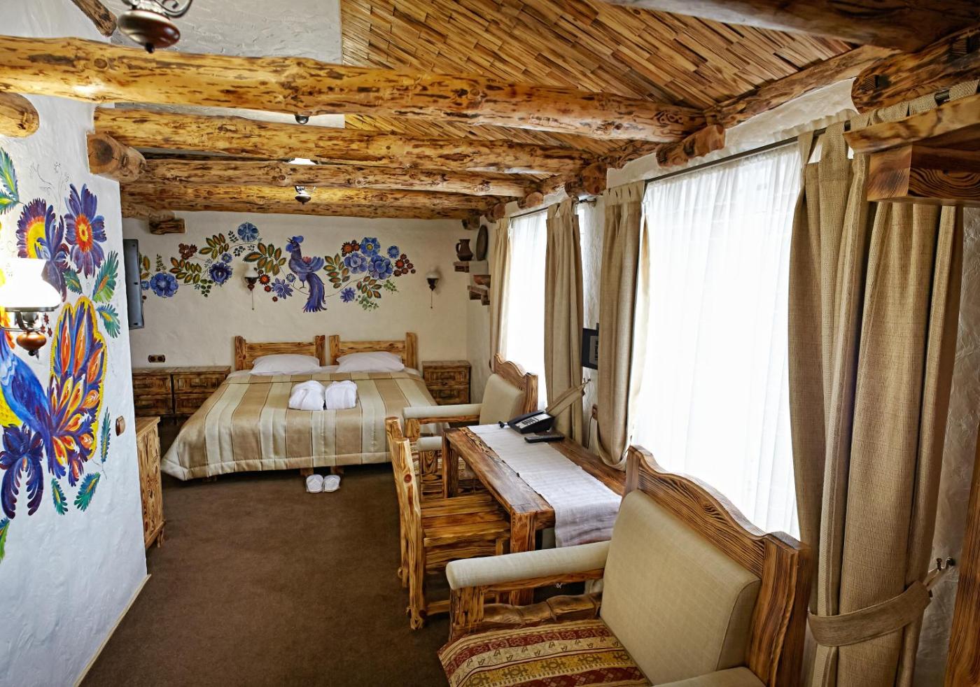 All the individually decorated rooms at Pidkova include a kettle and fridge. Bathrooms come with a hairdryer and slippers.
