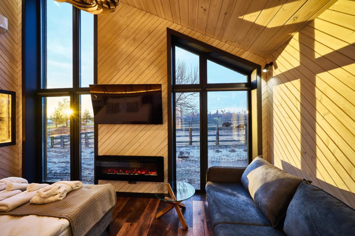 Double Room with Pool View. This double room features a fireplace. Featuring free toiletries and bathrobes, this double room includes a private bathroom with a shower, a hairdryer and slippers. Guests will find a refrigerator and a tea and coffee maker in the kitchenette. The double room also comes with a barbecue. The air-conditioned double room features a flat-screen TV, a private entrance, soundproof walls, a minibar as well as pool views. The unit has 2 beds. ;